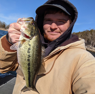 Went out today to get ready for a trip tomorrow. The fish weren't exactly where I thought they would be, but I figured 'em out enough to catch a couple. Caught two largemouth - the bigger one went almost 4 pounds. Water has jumped a couple of degrees on the main lake since Saturday. Lots of warmth forecasted this week and I'm looking forward to improving fishing conditions!