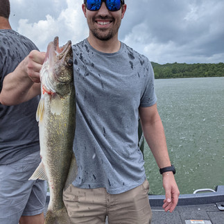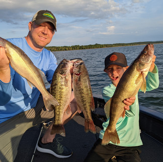 Mitch, Matt, and Hudson on the boat this morning. An excellent walleye bite yielded 11 keepers. Afternoon trip with Dennis and the boys ended up a bit damp after storms rolled into the area. Still caught some nice fish before we had to make a run for it. Post front conditions made it tough for Nick and his boy this evening. Fished hard and got a few nice ones for their supper - had to quit early again due to storms.