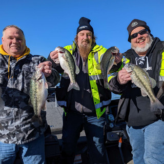 Absolutely CRUSHED the fish today. Still a bit chilly, but the fishing was on fire! Jakob and Kate from Kansas came out this morning and started the day with a strong 27 fish showing. Roe, Joe, and Mike from Minnesota finished off the day with 32 more fish! Total of 59 fish on the day with about 20 keeper sized fish. A tremendous day of spring fishing!