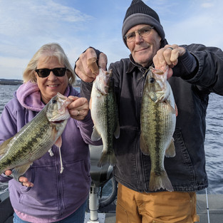 Day 2 with Mike and Judy today. Had some serious fog hanging over the lake this morning, so didn't get started until about 11. There are some massive schools of fish out there, just need to get a few more to start eating. Did get an elusive triple hookup today though!